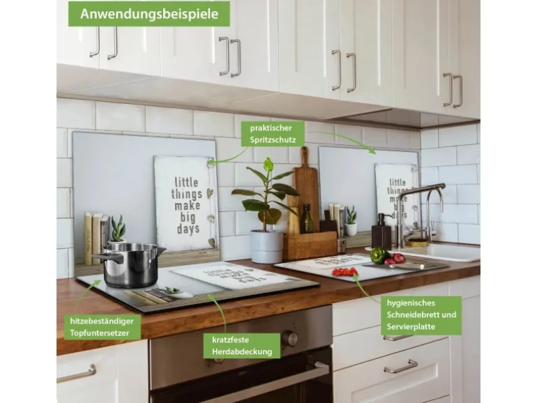 Banjado Herdabdeckplatte Glas 1 Teilig 60x52CM Schneidebrett Herdabdeckung Mit Motiv Little Things