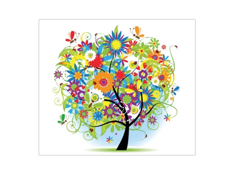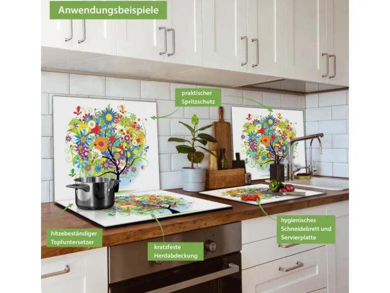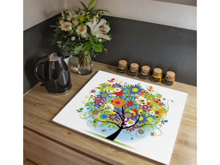 Banjado Herdabdeckplatte Glas 1 Teilig 60x52CM Schneidebrett Herdabdeckung Mit Motiv Märchenzauberbaum