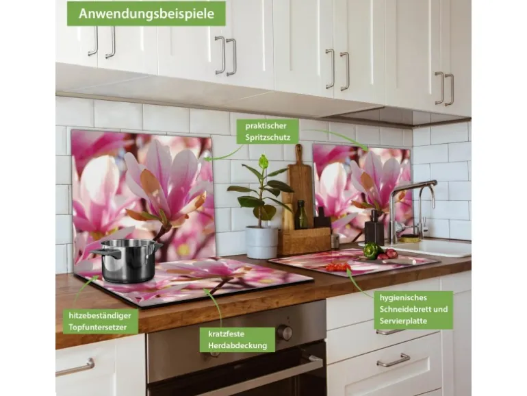 Banjado Herdabdeckplatte Glas 1 Teilig 60x52CM Schneidebrett Herdabdeckung Mit Motiv Magnolia