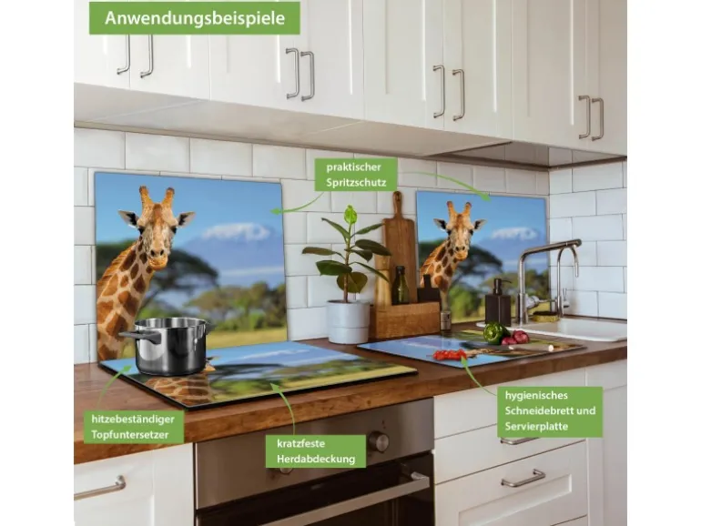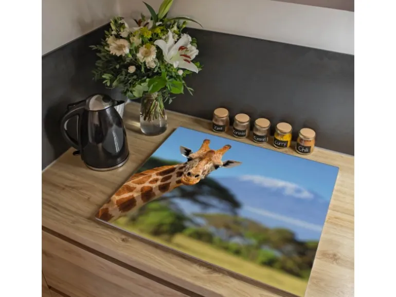 Banjado Herdabdeckplatte Glas 1 Teilig 60x52CM Schneidebrett Herdabdeckung Mit Motiv Miss Kilimandscharo