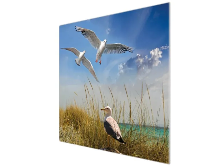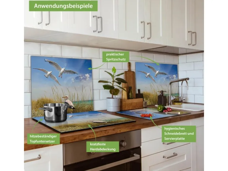 Banjado Herdabdeckplatte Glas 1 Teilig 60x52CM Schneidebrett Herdabdeckung Mit Motiv Möwen