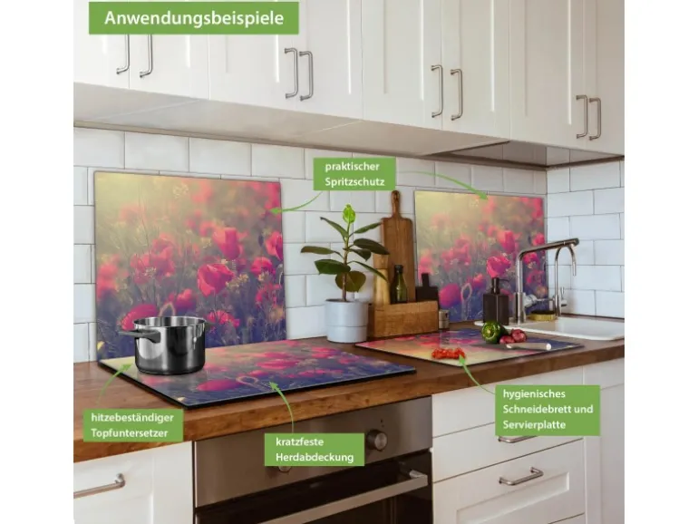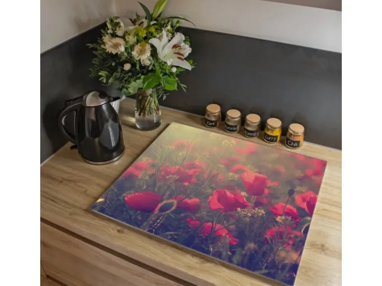 Banjado Herdabdeckplatte Glas 1 Teilig 60x52CM Schneidebrett Herdabdeckung Mit Motiv Mohn