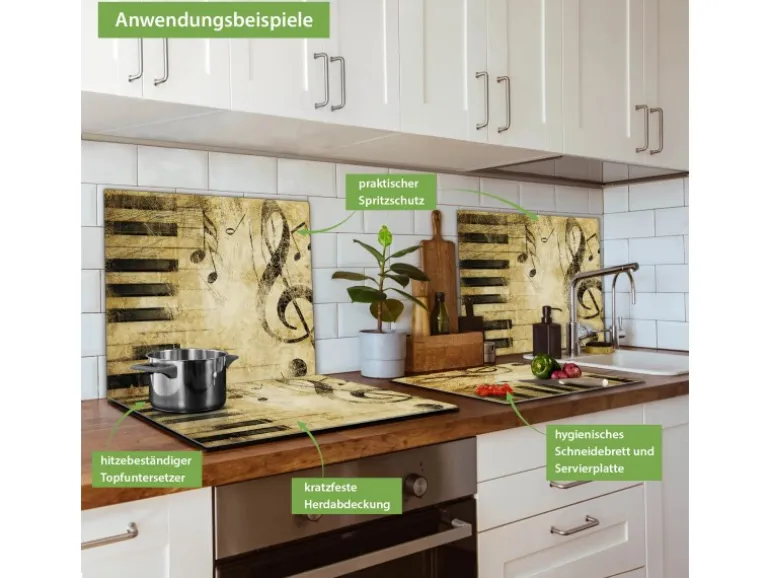Banjado Herdabdeckplatte Glas 1 Teilig 60x52CM Schneidebrett Herdabdeckung Mit Motiv Music