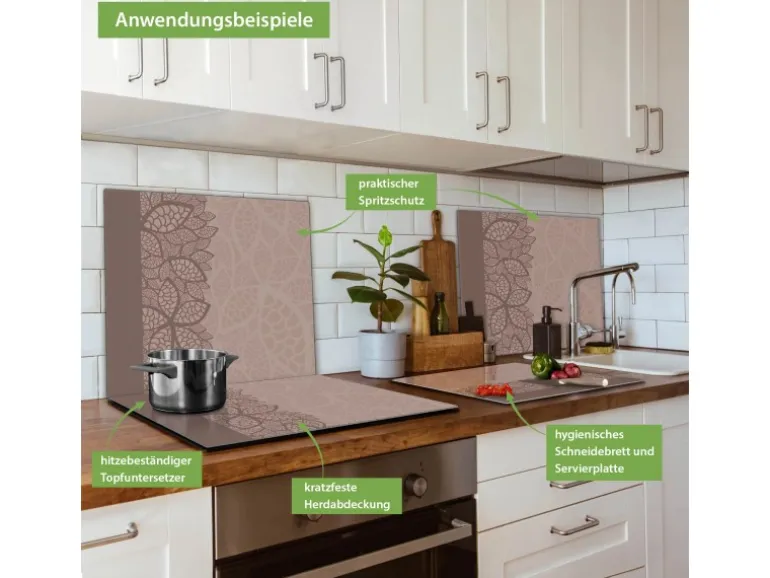Banjado Herdabdeckplatte Glas 1 Teilig 60x52CM Schneidebrett Herdabdeckung Mit Motiv Muster Blätter