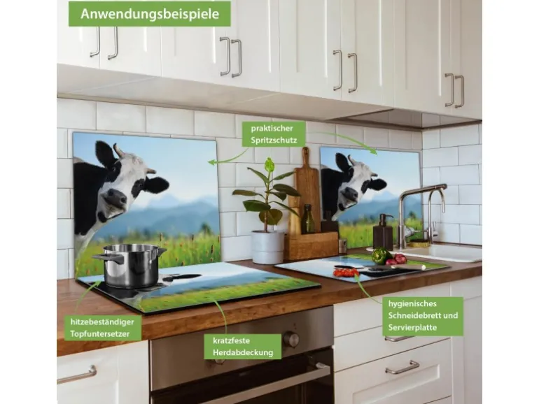Banjado Herdabdeckplatte Glas 1 Teilig 60x52CM Schneidebrett Herdabdeckung Mit Motiv Neugierig