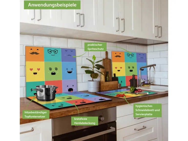 Banjado Herdabdeckplatte Glas 1 Teilig 60x52CM Schneidebrett Herdabdeckung Mit Motiv Neun Keinenasen