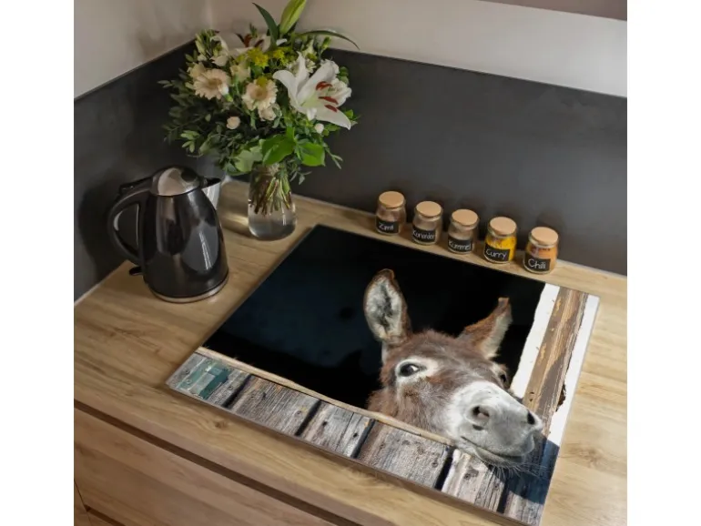 Banjado Herdabdeckplatte Glas 1 Teilig 60x52CM Schneidebrett Herdabdeckung Mit Motiv Nicki