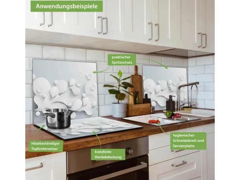 Banjado Herdabdeckplatte Glas 1 Teilig 60x52CM Schneidebrett Herdabdeckung Mit Motiv Papiertropfen