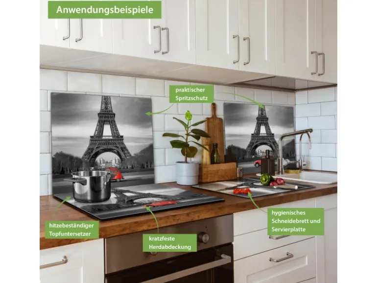 Banjado Herdabdeckplatte Glas 1 Teilig 60x52CM Schneidebrett Herdabdeckung Mit Motiv Paris
