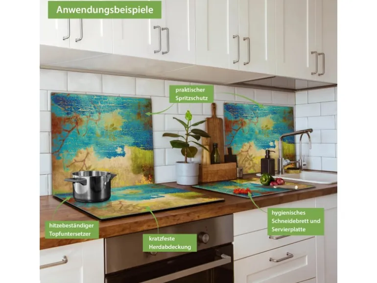 Banjado Herdabdeckplatte Glas 1 Teilig 60x52CM Schneidebrett Herdabdeckung Mit Motiv Patina