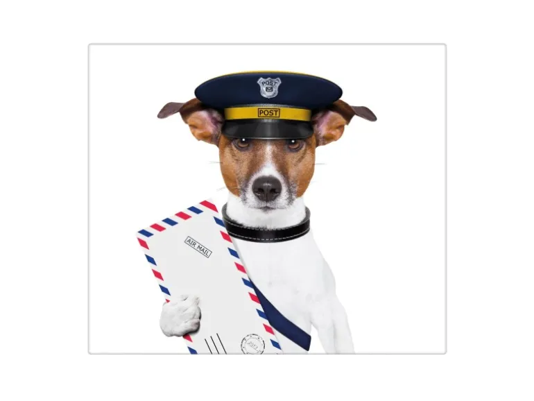 Banjado Herdabdeckplatte Glas 1 Teilig 60x52CM Schneidebrett Herdabdeckung Mit Motiv Postbote Jack Russel