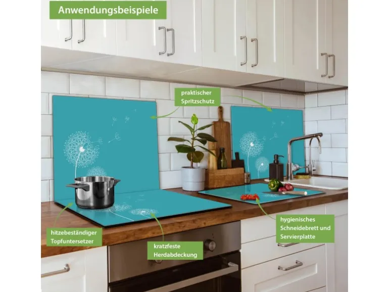 Banjado Herdabdeckplatte Glas 1 Teilig 60x52CM Schneidebrett Herdabdeckung Mit Motiv Pusteblume 4
