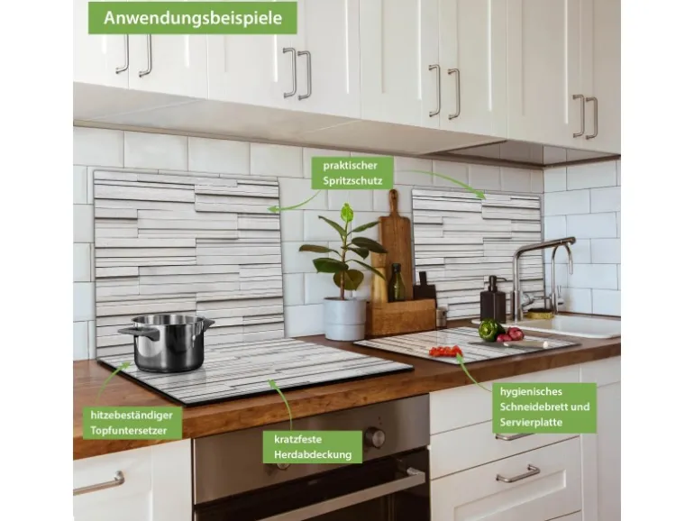 Banjado Herdabdeckplatte Glas 1 Teilig 60x52CM Schneidebrett Herdabdeckung Mit Motiv Relief