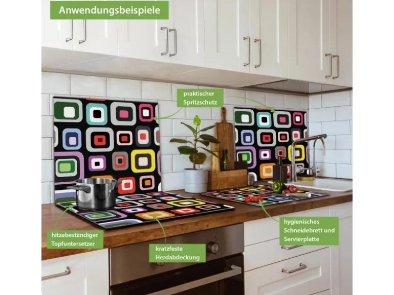 Banjado Herdabdeckplatte Glas 1 Teilig 60x52CM Schneidebrett Herdabdeckung Mit Motiv Retro
