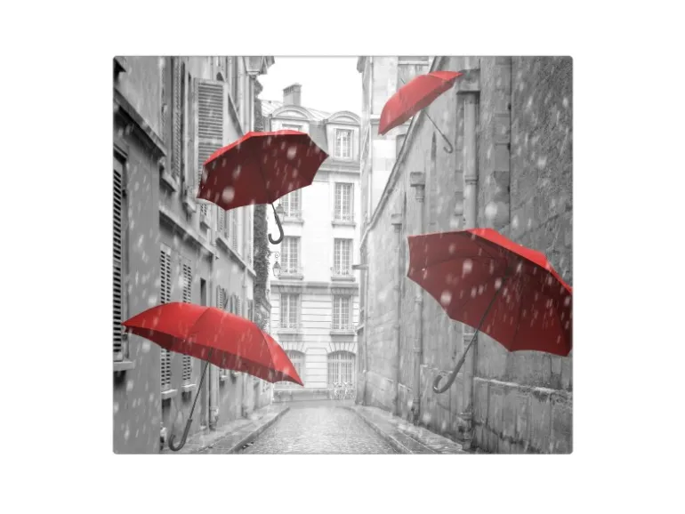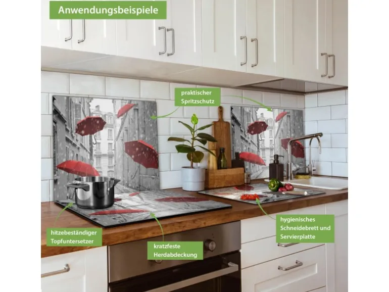 Banjado Herdabdeckplatte Glas 1 Teilig 60x52CM Schneidebrett Herdabdeckung Mit Motiv Rote Schirme
