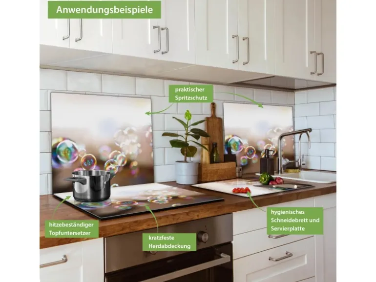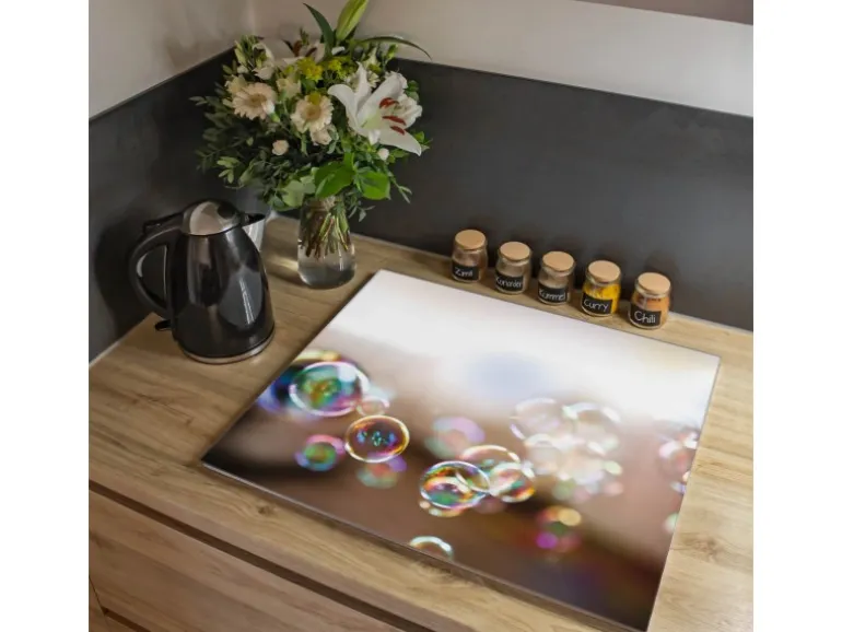 Banjado Herdabdeckplatte Glas 1 Teilig 60x52CM Schneidebrett Herdabdeckung Mit Motiv Seifenblasen