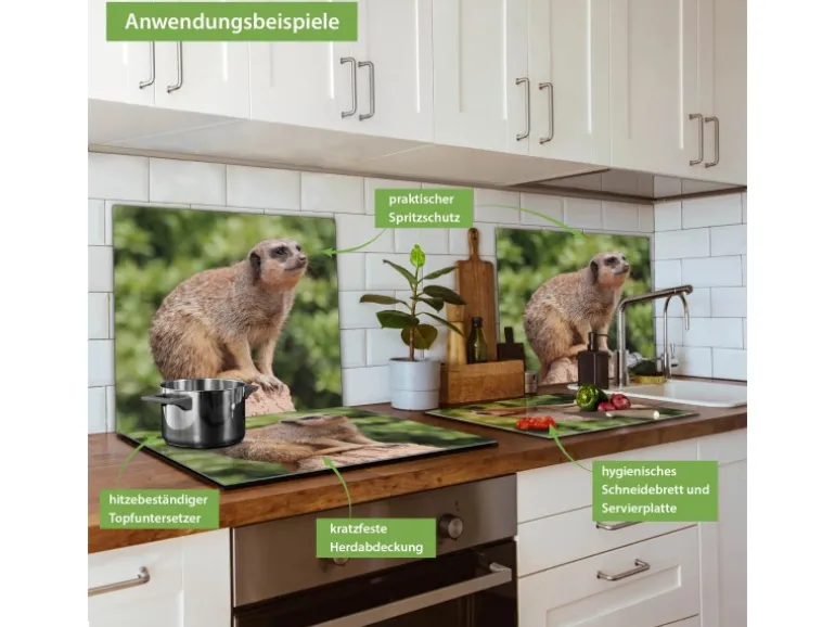Banjado Herdabdeckplatte Glas 1 Teilig 60x52CM Schneidebrett Herdabdeckung Mit Motiv Sitzendes Erdmännchen