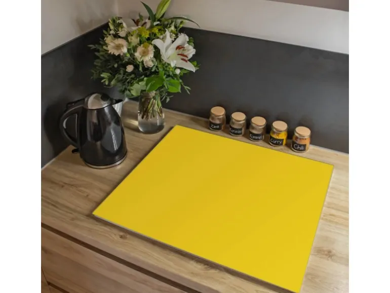 Banjado Herdabdeckplatte Glas 1 Teilig 60x52CM Schneidebrett Herdabdeckung Mit Motiv Sonnengelb