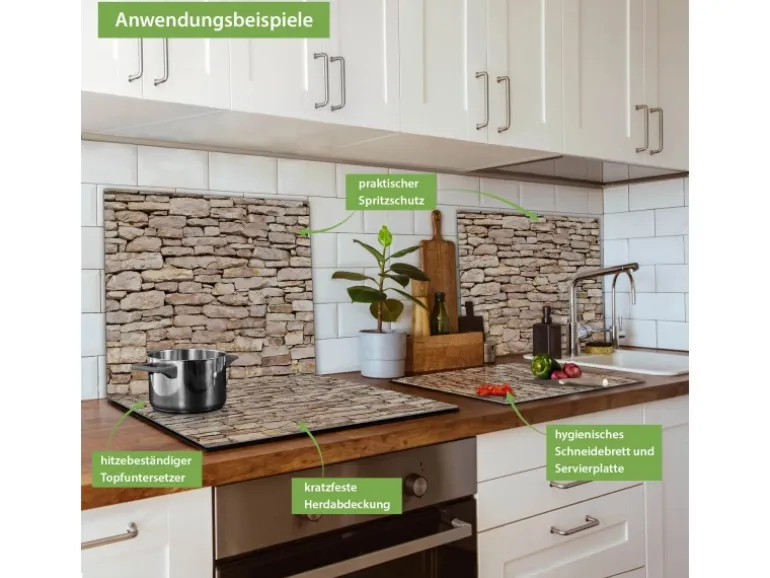 Banjado Herdabdeckplatte Glas 1 Teilig 60x52CM Schneidebrett Herdabdeckung Mit Motiv Stadtmauer