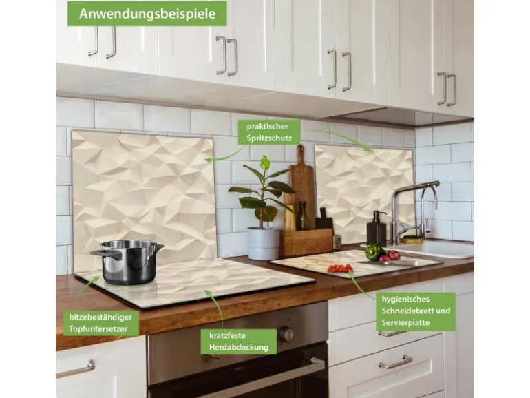 Banjado Herdabdeckplatte Glas 1 Teilig 60x52CM Schneidebrett Herdabdeckung Mit Motiv Steinwand 2