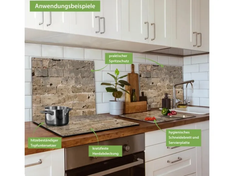 Banjado Herdabdeckplatte Glas 1 Teilig 60x52CM Schneidebrett Herdabdeckung Mit Motiv Steinwand Antik