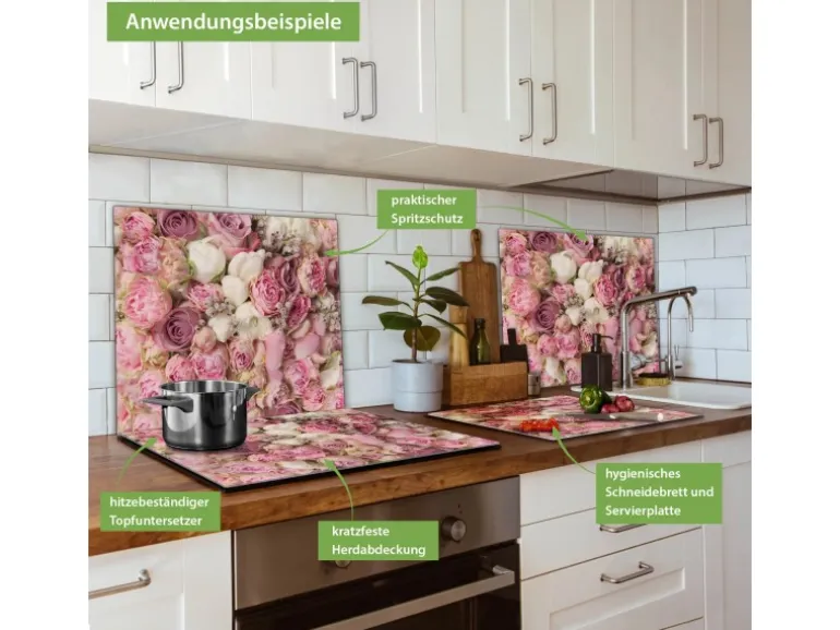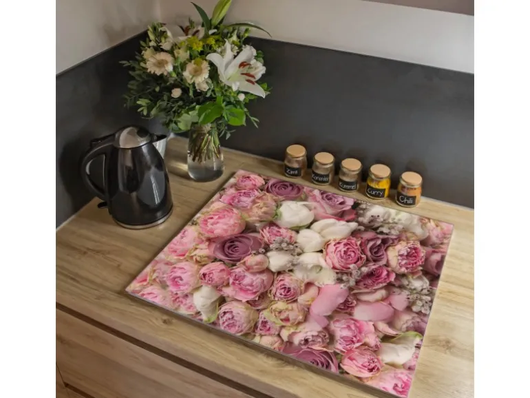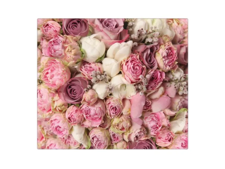 Banjado Herdabdeckplatte Glas 1 Teilig 60x52CM Schneidebrett Herdabdeckung Mit Motiv Strauss Rosen