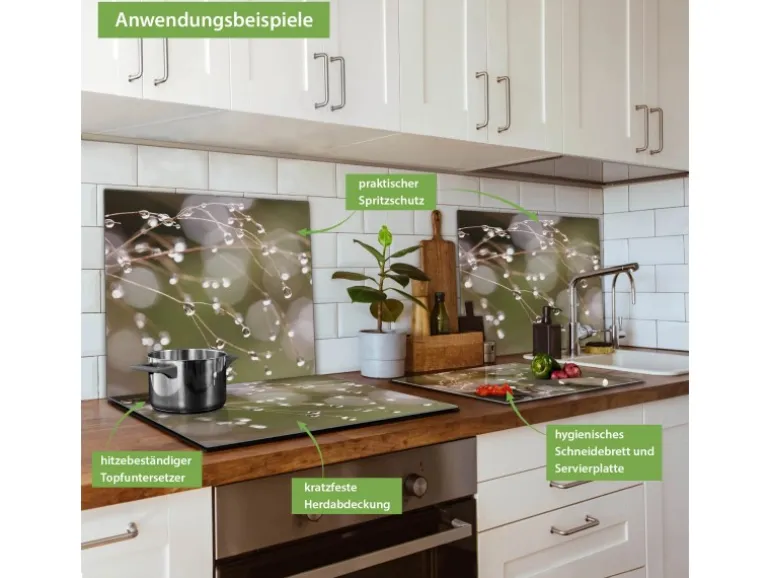 Banjado Herdabdeckplatte Glas 1 Teilig 60x52CM Schneidebrett Herdabdeckung Mit Motiv Tau Auf Zweigen