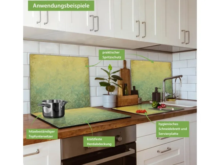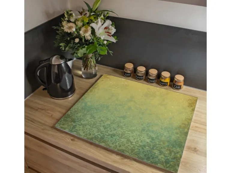 Banjado Herdabdeckplatte Glas 1 Teilig 60x52CM Schneidebrett Herdabdeckung Mit Motiv Vintage Messing