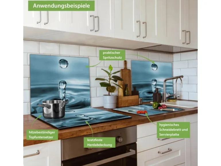 Banjado Herdabdeckplatte Glas 1 Teilig 60x52CM Schneidebrett Herdabdeckung Mit Motiv Wassertropfen