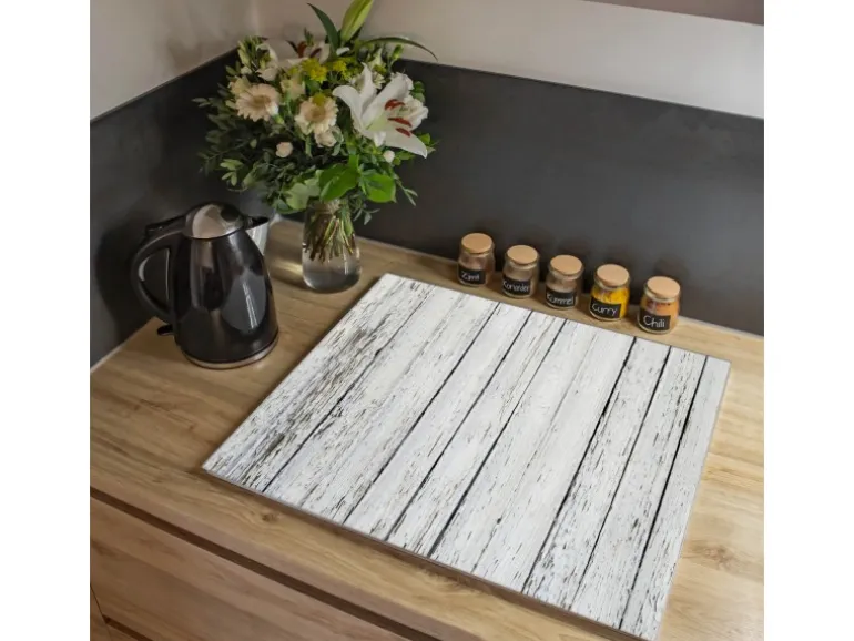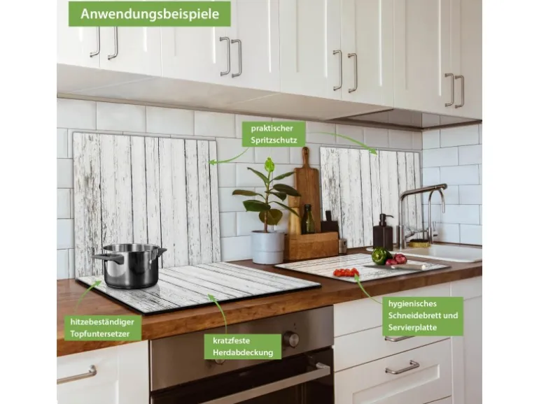 Banjado Herdabdeckplatte Glas 1 Teilig 60x52CM Schneidebrett Herdabdeckung Mit Motiv Weißer Bretterzaun