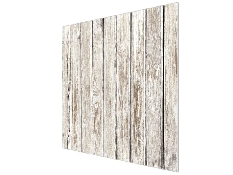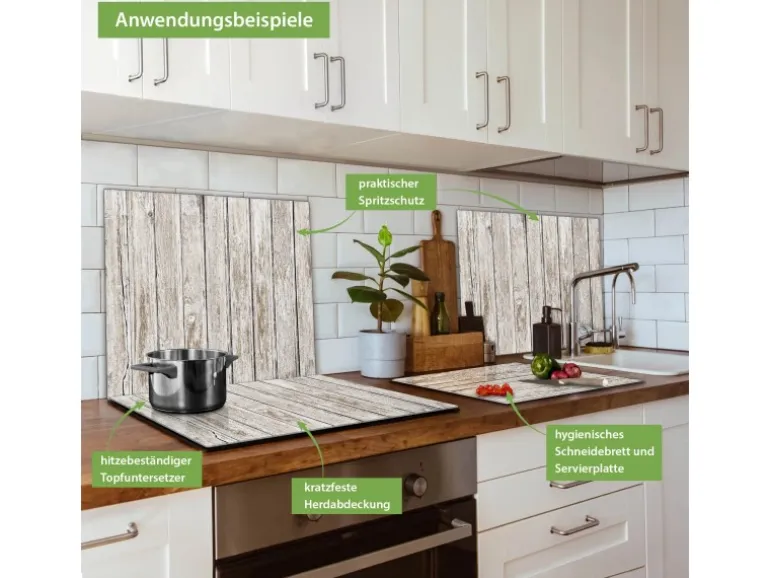 Banjado Herdabdeckplatte Glas 1 Teilig 60x52CM Schneidebrett Herdabdeckung Mit Motiv Weißes Holz