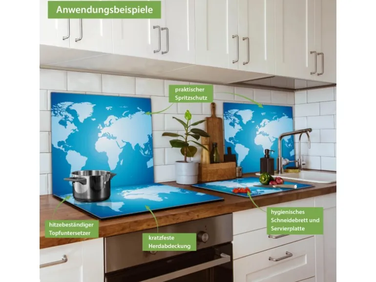 Banjado Herdabdeckplatte Glas 1 Teilig 60x52CM Schneidebrett Herdabdeckung Mit Motiv Weltkarte
