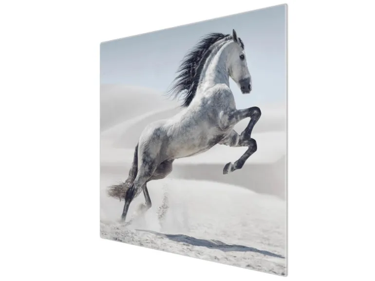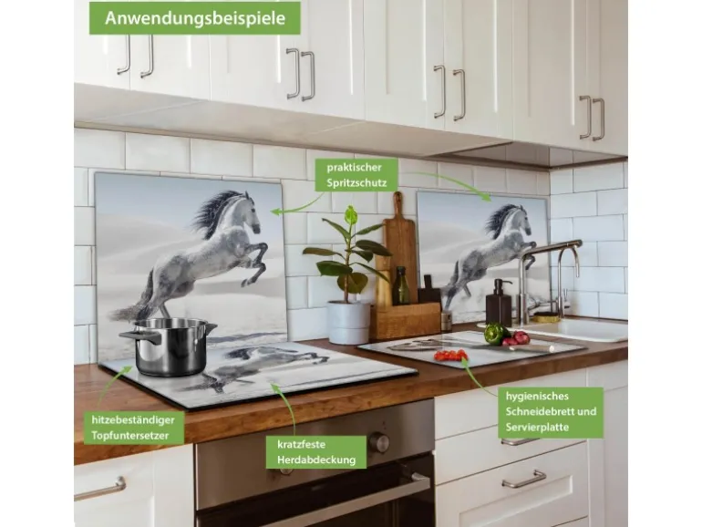 Banjado Herdabdeckplatte Glas 1 Teilig 60x52CM Schneidebrett Herdabdeckung Mit Motiv Wildes Pferd