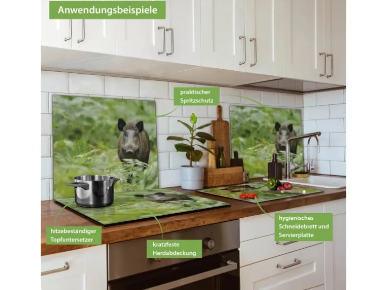 Banjado Herdabdeckplatte Glas 1 Teilig 60x52CM Schneidebrett Herdabdeckung Mit Motiv Wildschwein