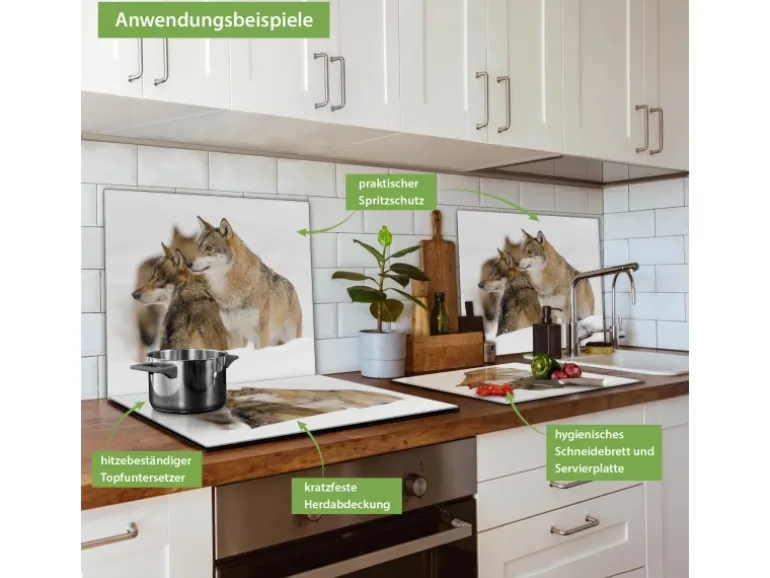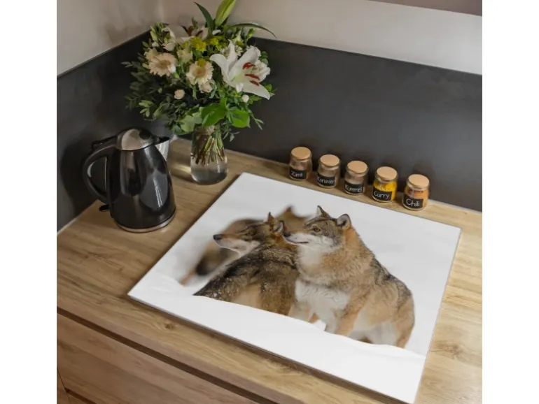 Banjado Herdabdeckplatte Glas 1 Teilig 60x52CM Schneidebrett Herdabdeckung Mit Motiv Wölfe