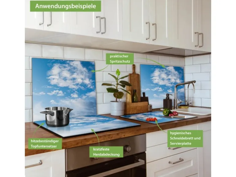 Banjado Herdabdeckplatte Glas 1 Teilig 60x52CM Schneidebrett Herdabdeckung Mit Motiv Wolken 1