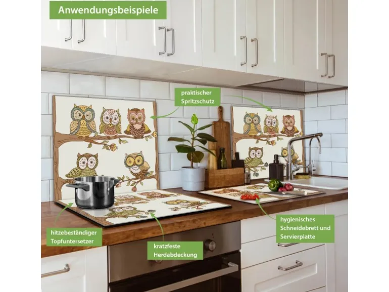Banjado Herdabdeckplatte Glas 1 Teilig 60x52CM Schneidebrett Herdabdeckung Mit Motiv Zehn-Augen-Prinzip