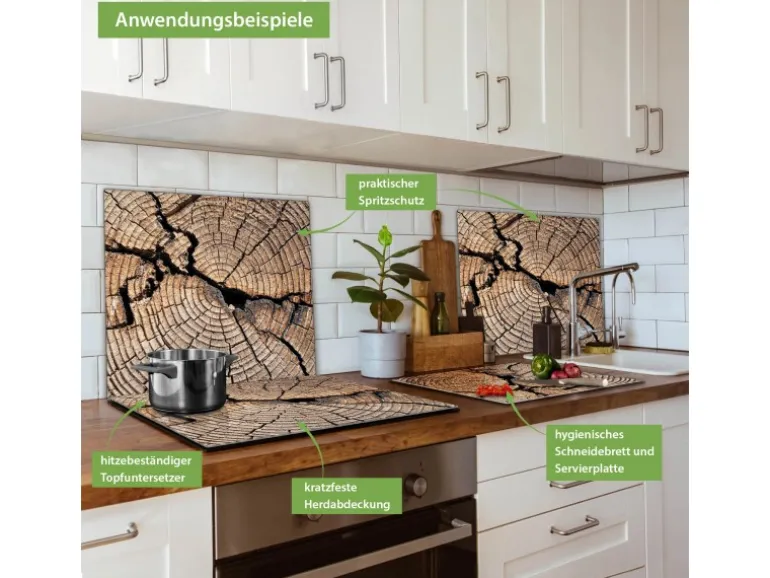 Banjado Herdabdeckplatte Glas 1 Teilig 60x52CM Schneidebrett Herdabdeckung Mit Motiv Zeichen Der Zeit