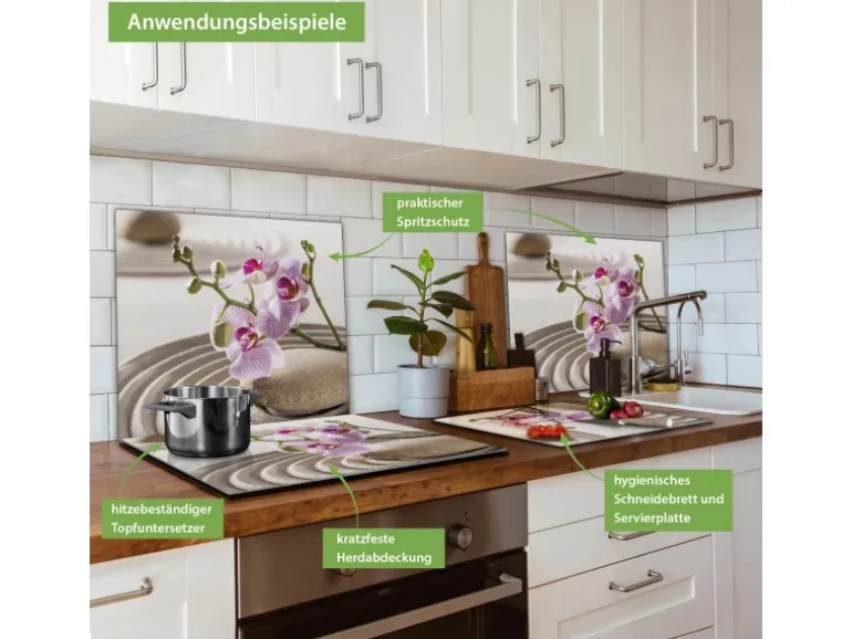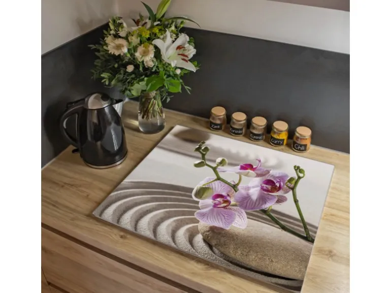 Banjado Herdabdeckplatte Glas 1 Teilig 60x52CM Schneidebrett Herdabdeckung Mit Motiv Zen Relax