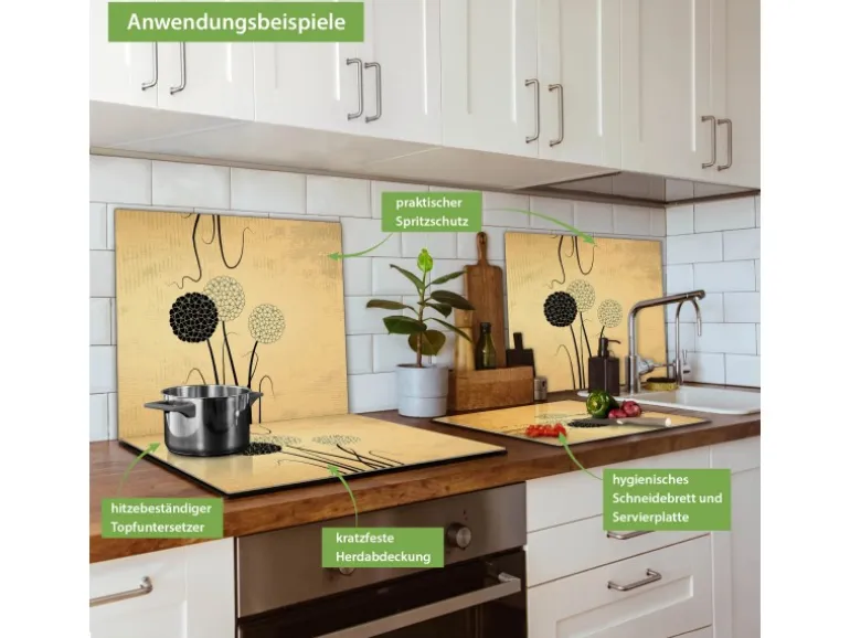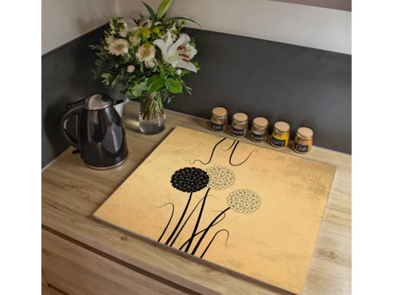 Banjado Herdabdeckplatte Glas 1 Teilig 60x52CM Schneidebrett Herdabdeckung Mit Motiv Zwiebel Vintage