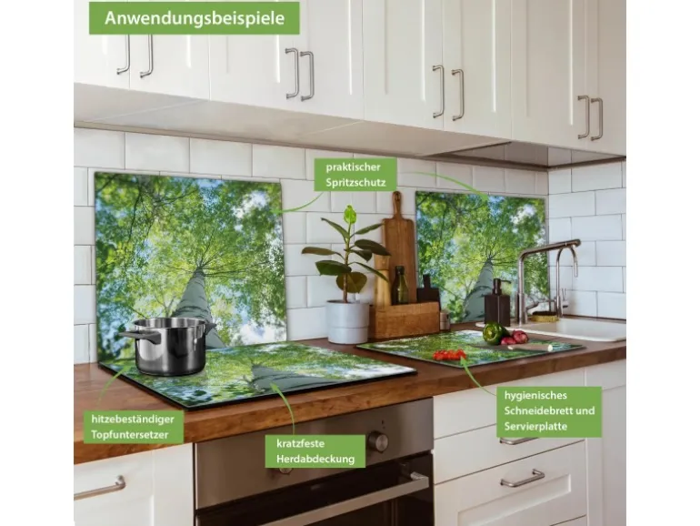 Banjado Herdabdeckplatte Glas 1 Teilig 60x52CM Schneidebrett Herdabdeckung Mit Motiv Zwischen Bäumen 5