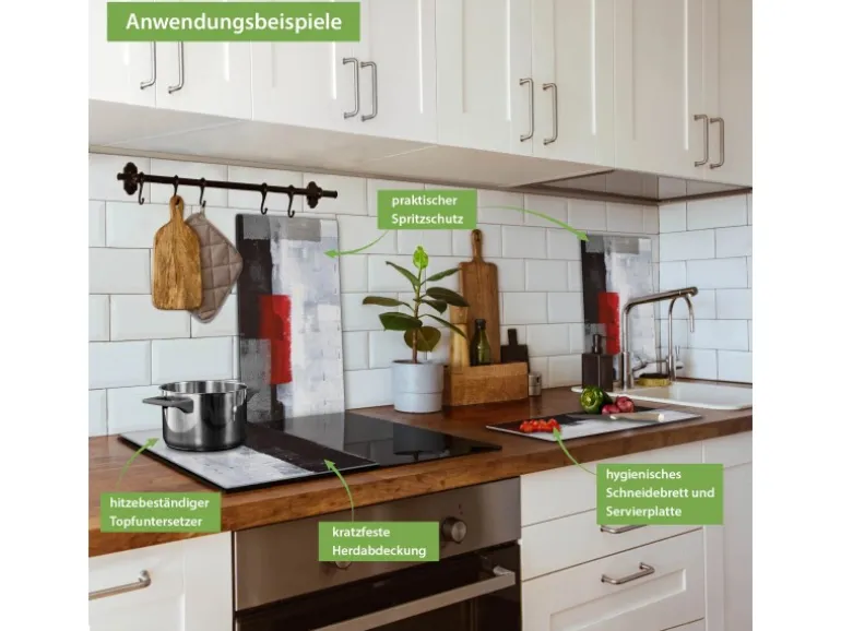 Banjado Herdabdeckplatte Glas 2 Teilig Je 30x52CM Schneidebrett Herdabdeckung Mit Motiv Abstrakt Rot