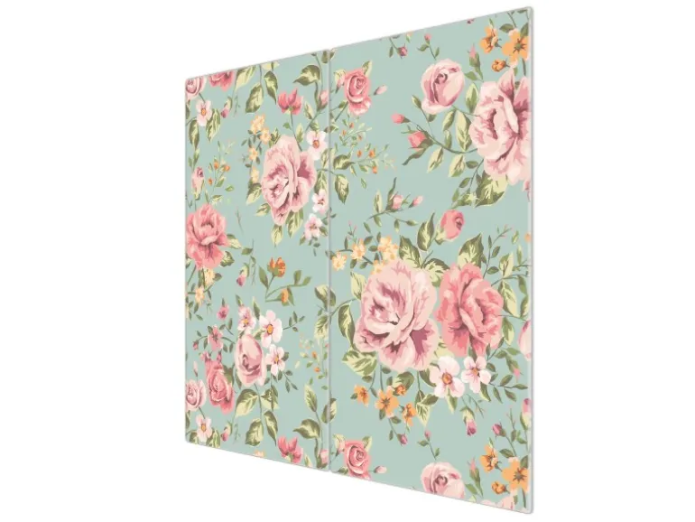 Banjado Herdabdeckplatte Glas 2 Teilig Je 30x52CM Schneidebrett Herdabdeckung Mit Motiv Altrosa Blume