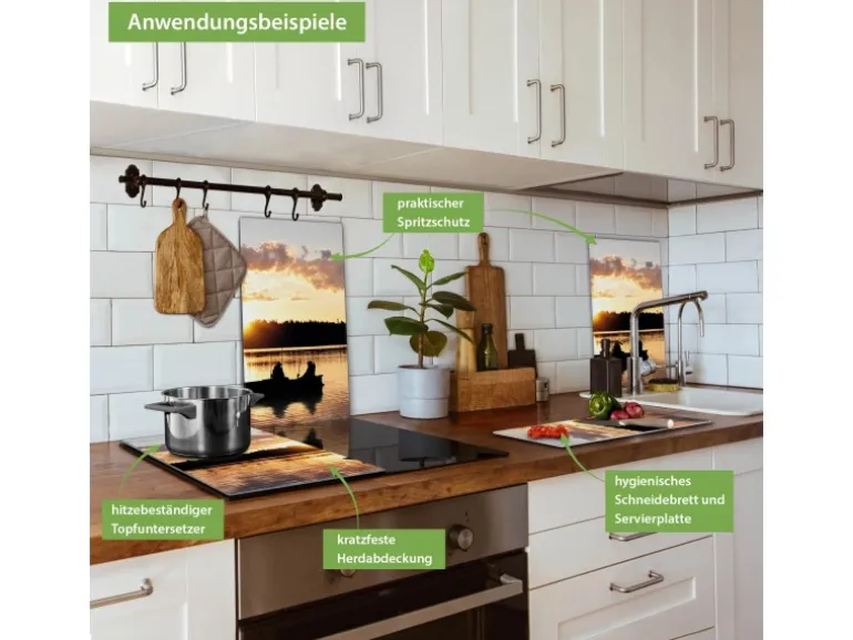 Banjado Herdabdeckplatte Glas 2 Teilig Je 30x52CM Schneidebrett Herdabdeckung Mit Motiv Angler