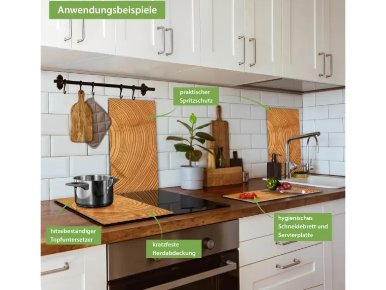 Banjado Herdabdeckplatte Glas 2 Teilig Je 30x52CM Schneidebrett Herdabdeckung Mit Motiv Baumstamm