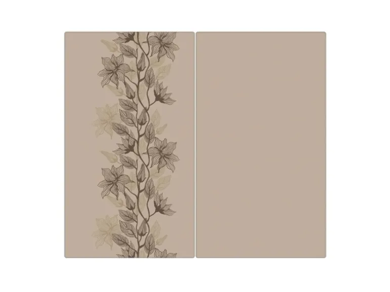 Banjado Herdabdeckplatte Glas 2 Teilig Je 30x52CM Schneidebrett Herdabdeckung Mit Motiv Baumwollblüte Monochrom