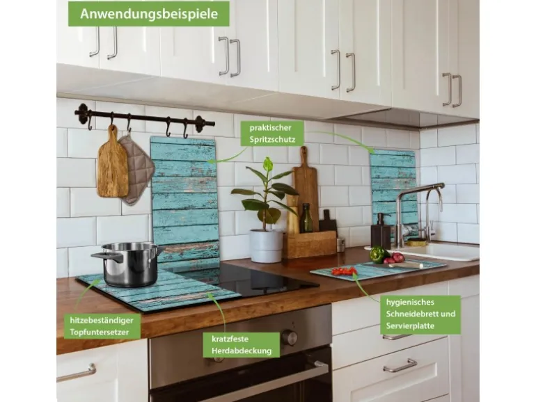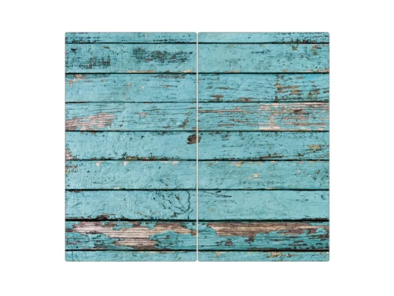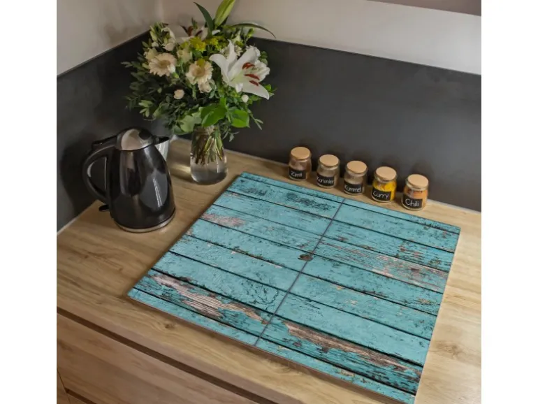 Banjado Herdabdeckplatte Glas 2 Teilig Je 30x52CM Schneidebrett Herdabdeckung Mit Motiv Blaue Holzlatten