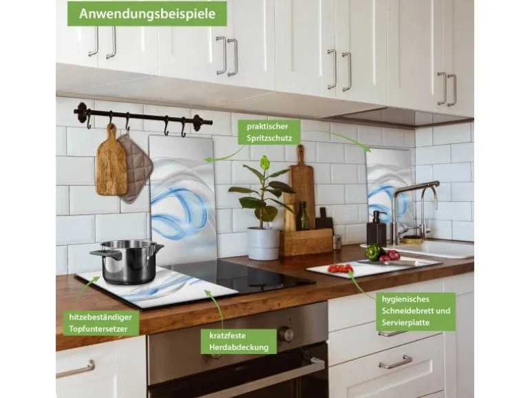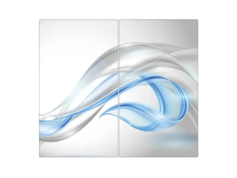 Banjado Herdabdeckplatte Glas 2 Teilig Je 30x52CM Schneidebrett Herdabdeckung Mit Motiv Blauer Schleier