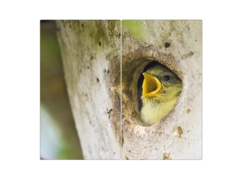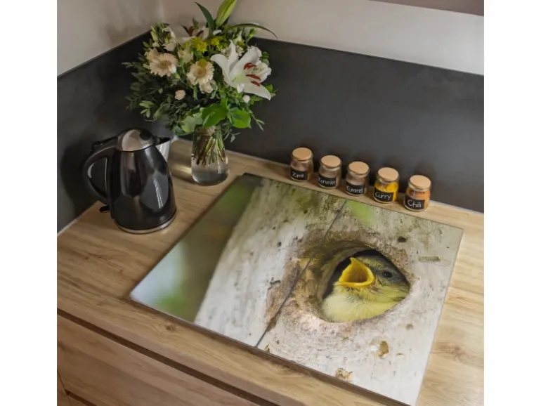 Banjado Herdabdeckplatte Glas 2 Teilig Je 30x52CM Schneidebrett Herdabdeckung Mit Motiv Blaumeise