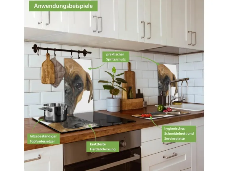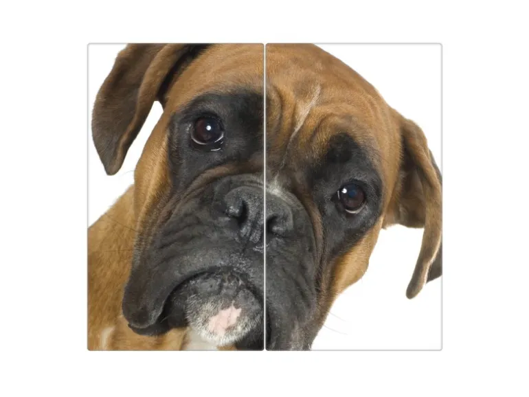 Banjado Herdabdeckplatte Glas 2 Teilig Je 30x52CM Schneidebrett Herdabdeckung Mit Motiv Boxer